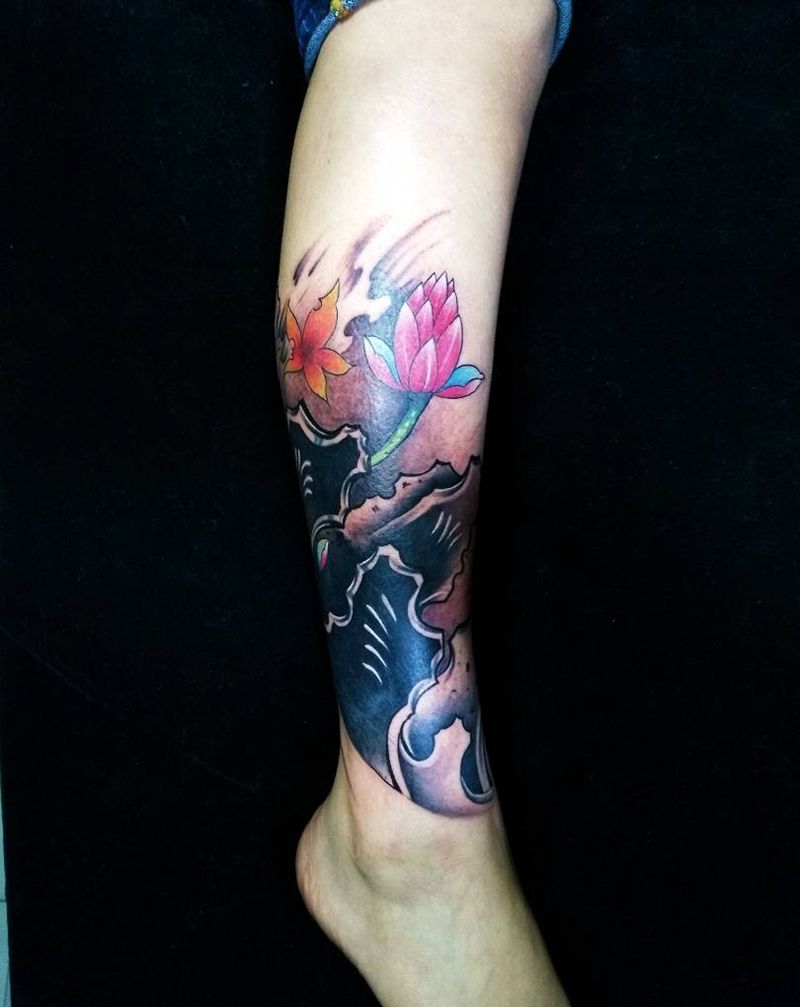 • T网红王老大花腿龙纹身图片_腿部新传统纹身图案