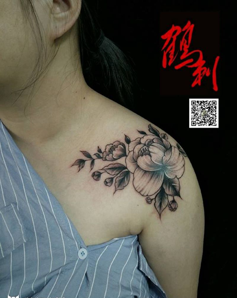 • 女性大花胸纹身_43张霸气漂亮的女性大花胸纹身图案作品