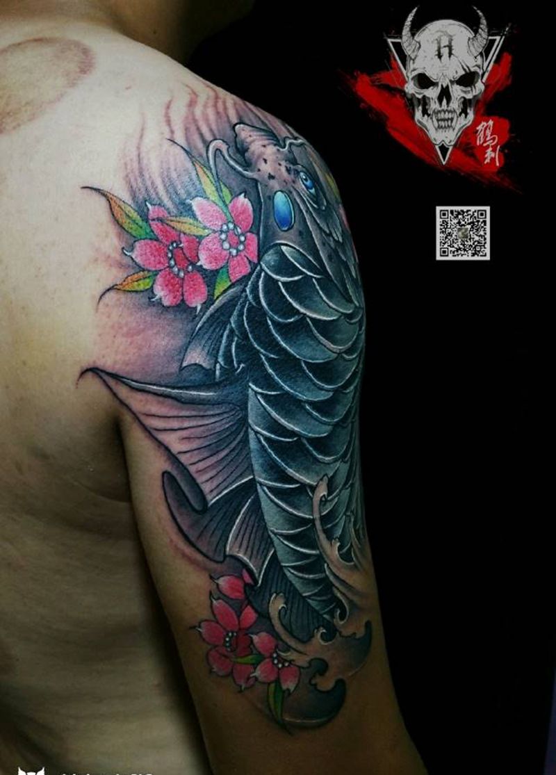 • 纹身吧推荐的披肩图腾半胛纹身图案作品展示