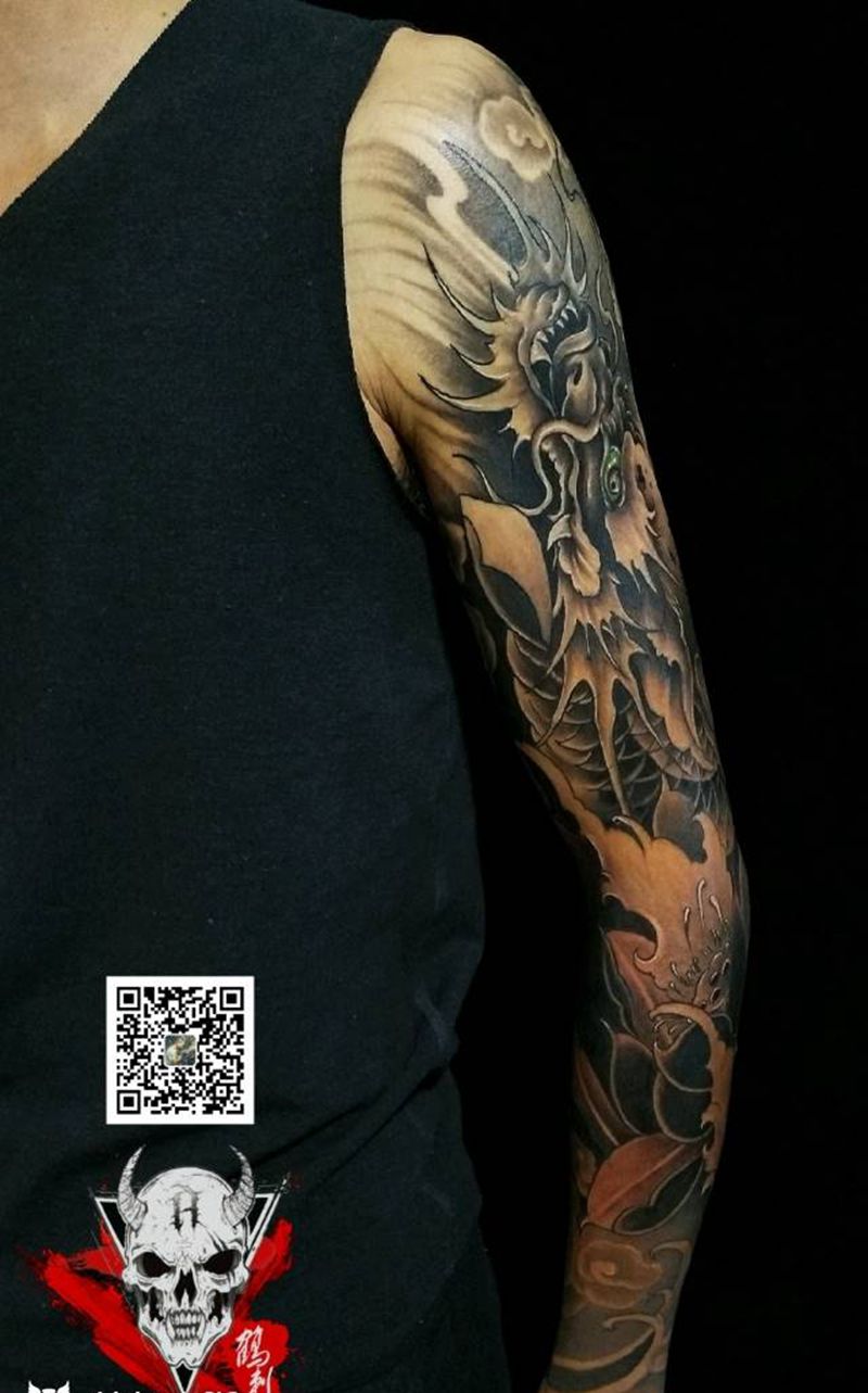 花臂龙初纹身图片_新传统纹身图案