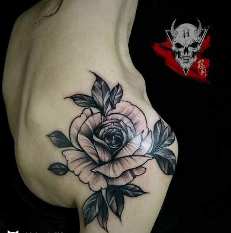 • 纹身吧推荐的披肩图腾半胛纹身图案作品展示
