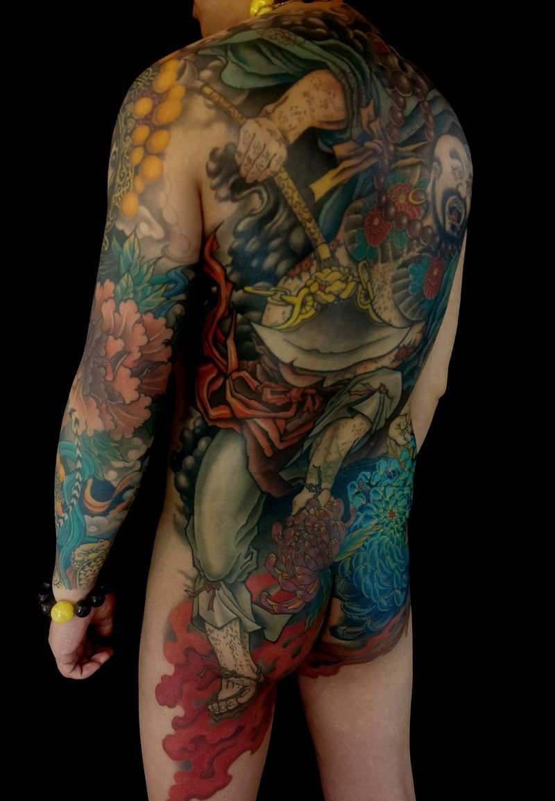 黑灰满背纹身图案