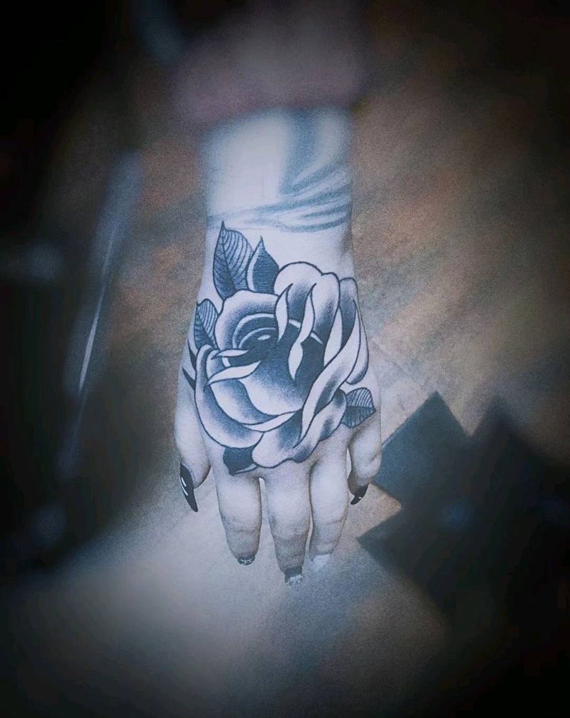 • 手背潮流时尚的玫瑰花眼睛纹身图案