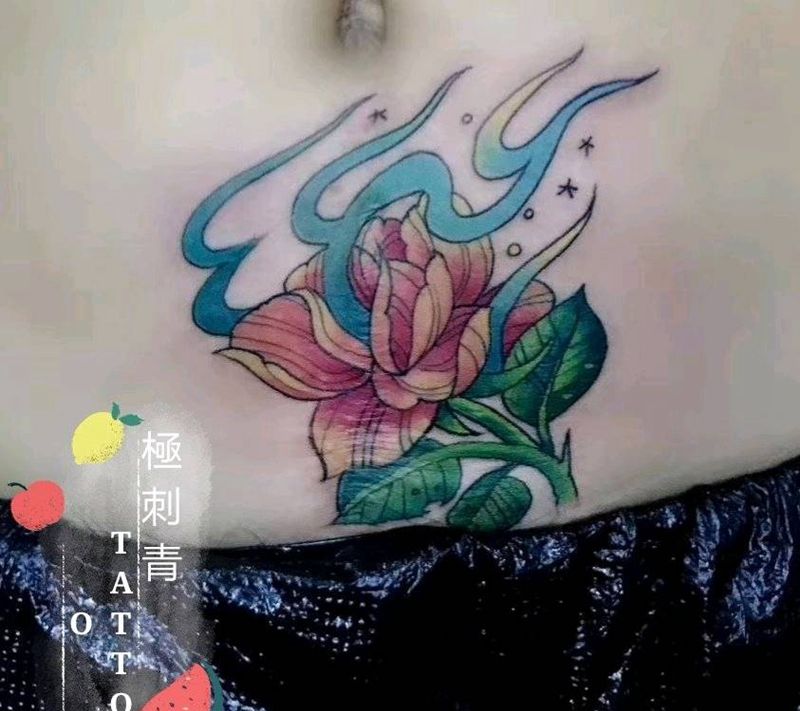 时尚性感的腹部莲花纹
