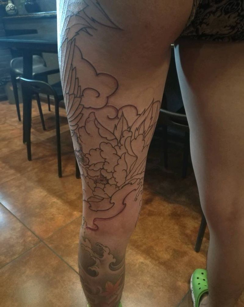 • T网红王老大花腿龙纹身图片_腿部新传统纹身图案