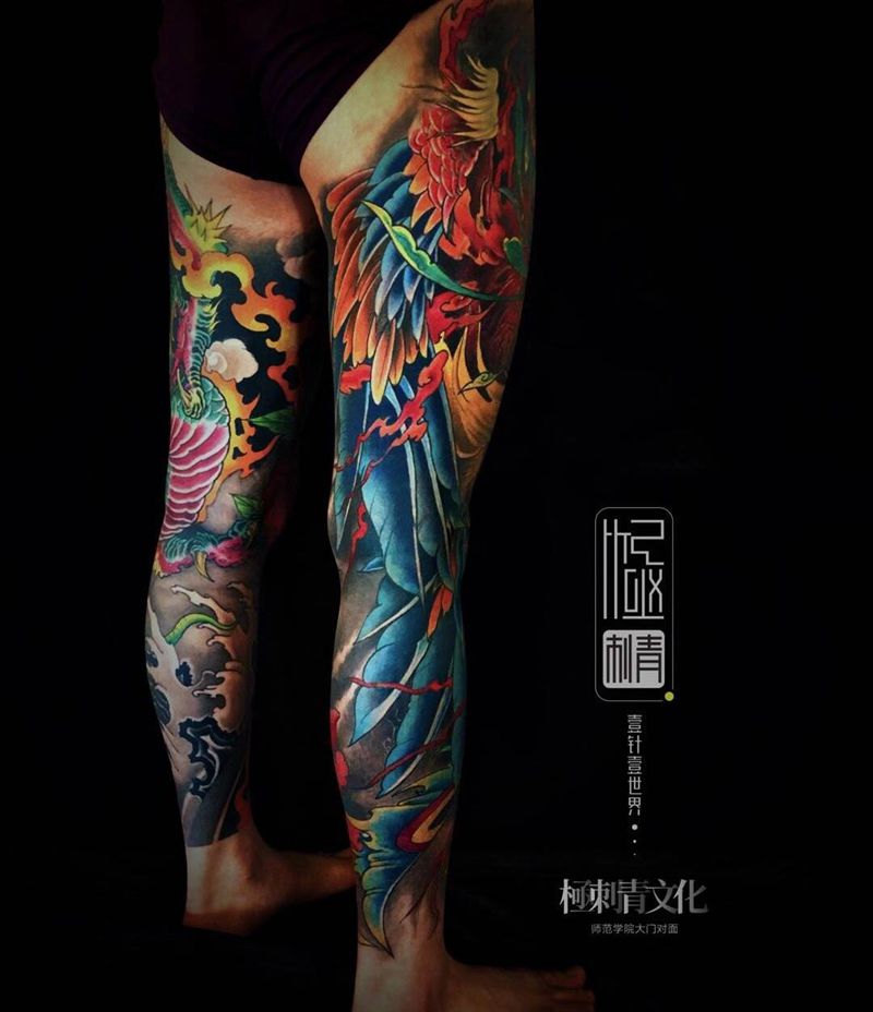 • T网红王老大花腿龙纹身图片_腿部新传统纹身图案