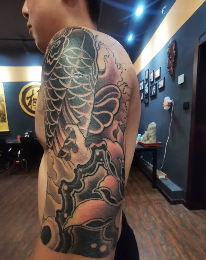 黑灰满背纹身图案