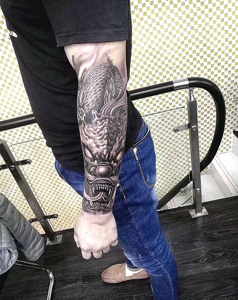 当前位置: 首页 >上海市纹身店-上海大武刺青工作室纹身图案>小臂龙头纹身图片