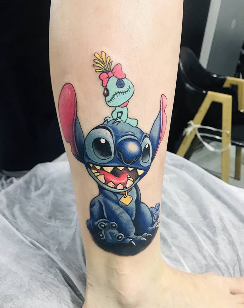 当前位置: 首页 >上海市纹身店-上海大武刺青工作室纹身图案>史迪奇..遮盖作业纹身图片_腿部脚部New School遮盖纹身图案