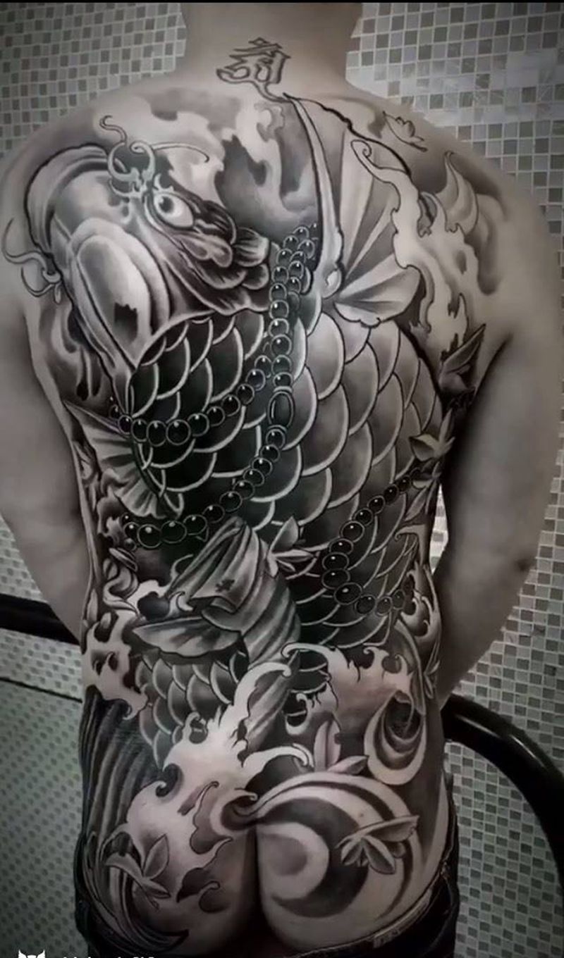 满背鲤鱼纹身图片