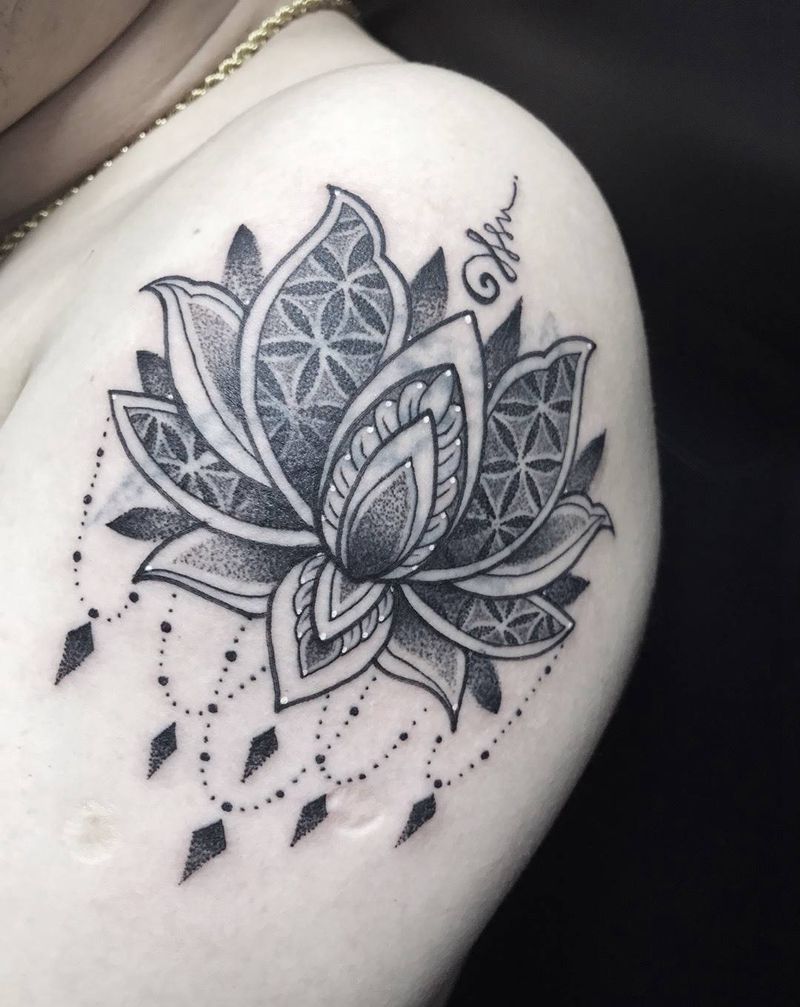 一组15张莲花纹身手