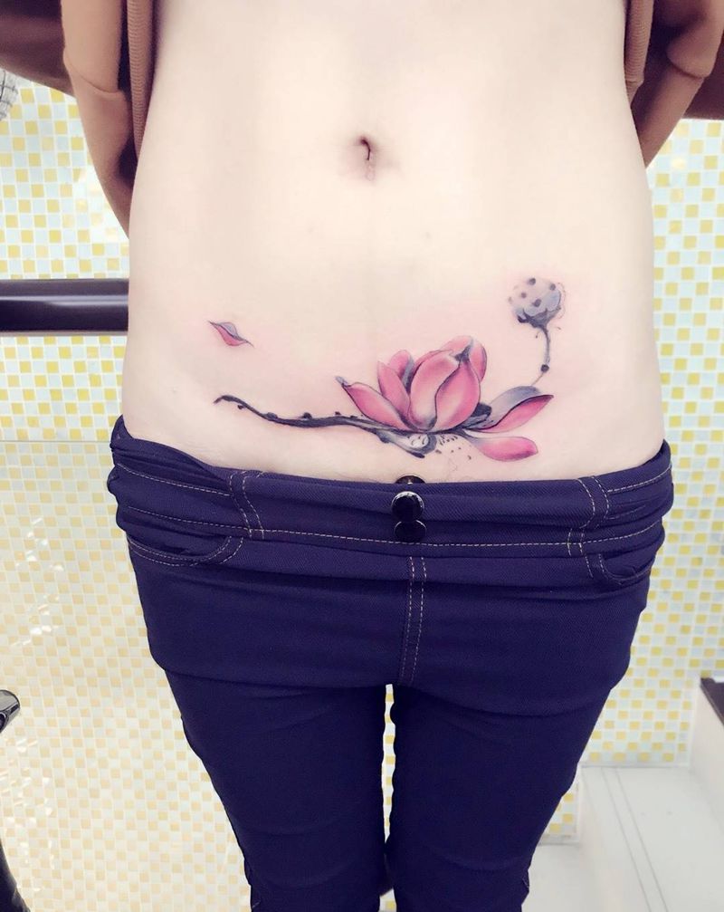 • 时尚性感的腹部莲花纹身图案