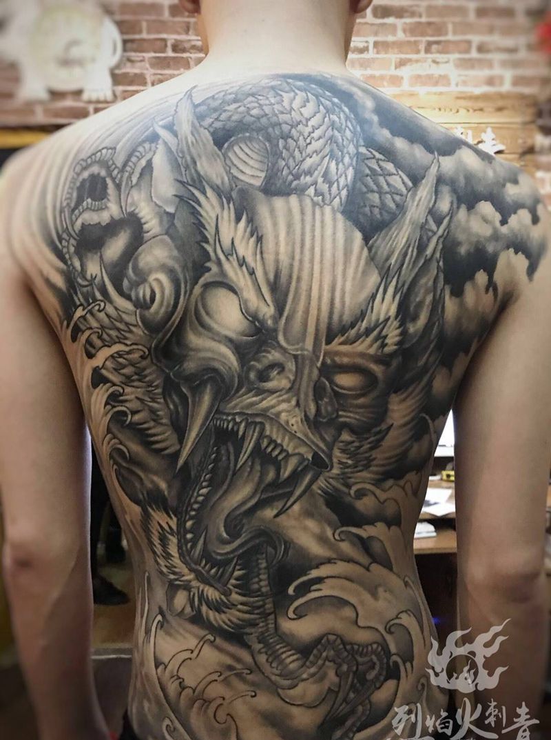 • T云龙九郎纹身图片_背部老传统云龙九郎纹身图案