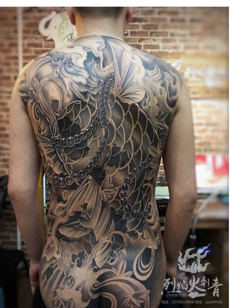黑灰满背纹身图案