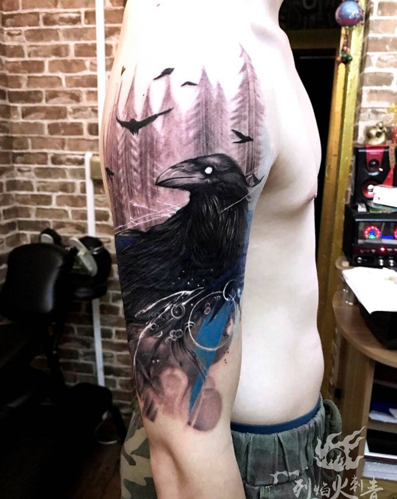 当前位置: 首页 >黑龙江省牡丹江市纹身店-烈焰火刺青纹身图案>乌鸦。遮盖纹身纹身图片