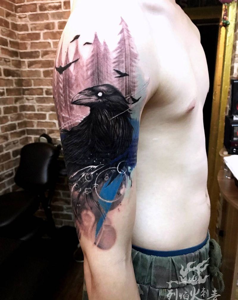 当前位置: 首页 >黑龙江省牡丹江市纹身店-烈焰火刺青纹身图案>乌鸦。遮盖纹身纹身图片
