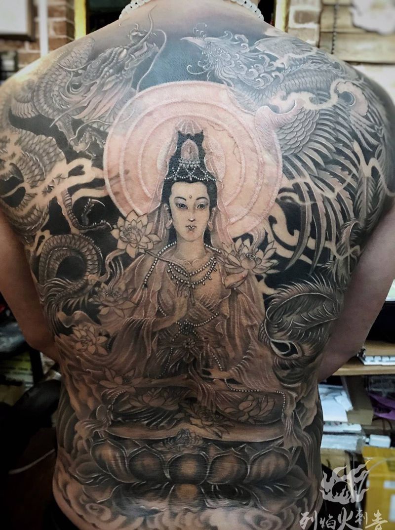 当前位置: 首页 >黑龙江省牡丹江市纹身店-烈焰火刺青纹身图案>观音 龙凤呈祥纹身图片_背部新传统纹身图案