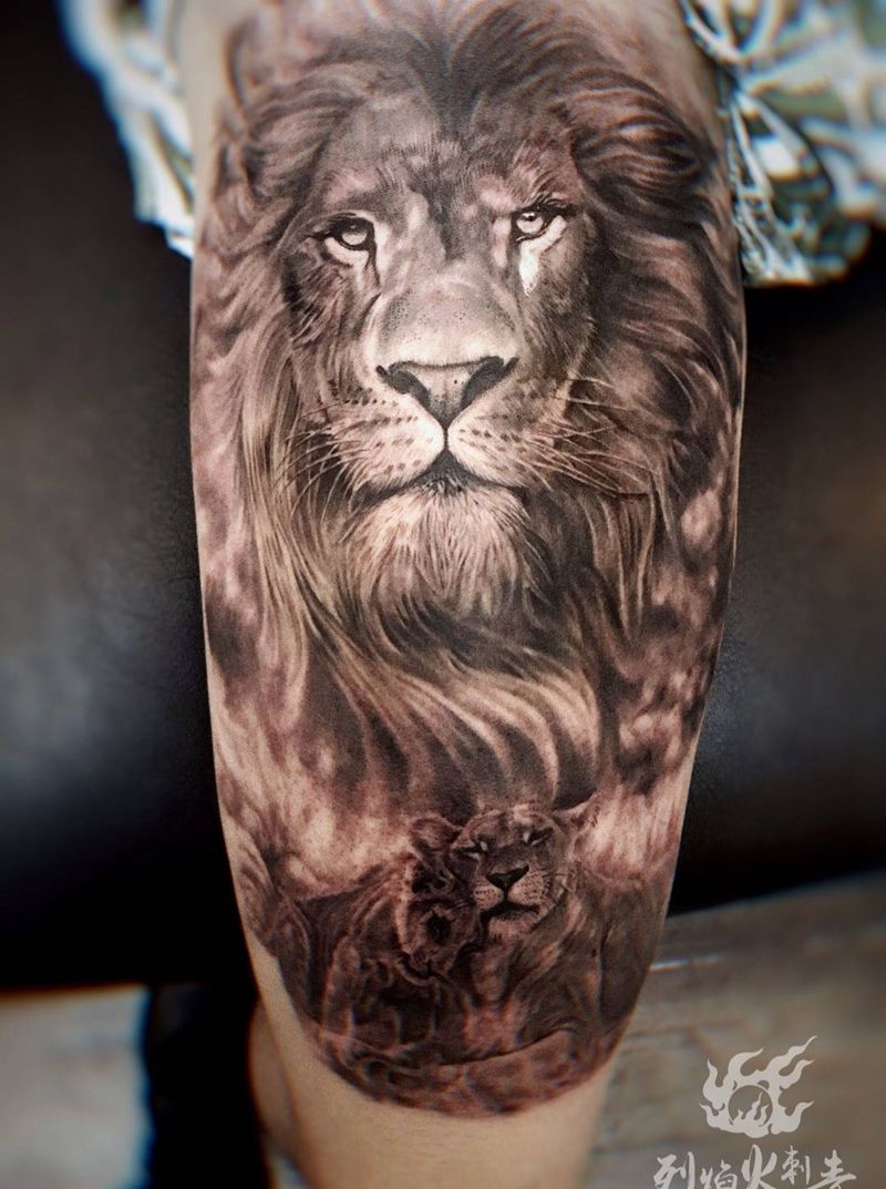 当前位置: 首页 >黑龙江省牡丹江市纹身店-烈焰火刺青纹身图案>狮子纹身图片_腿部欧美写实纹身图案