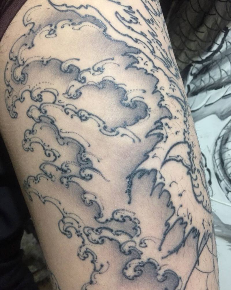• T网红王老大花腿龙纹身图片_腿部新传统纹身图案