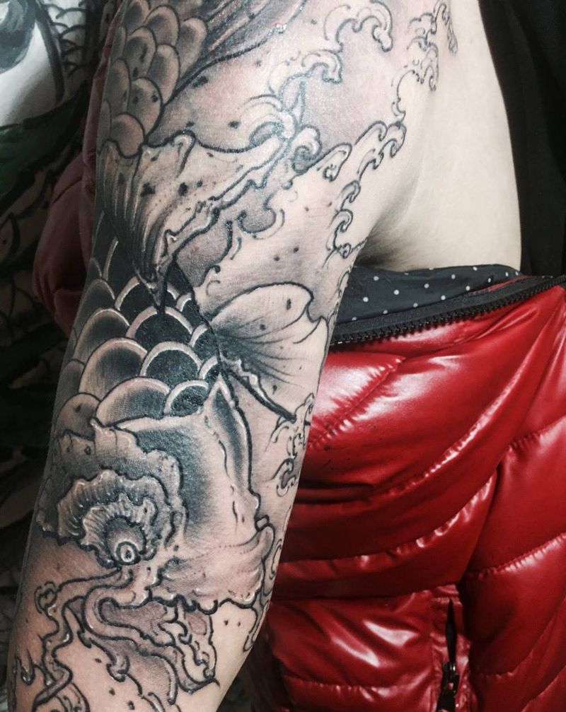 当前位置: 首页 >黑龙江省佳木斯市纹身店-九霄刺青TATTOO纹身图案>新传统手绘原创锦鲤纹身图片_原创动物国画传统手臂成品纹身图案