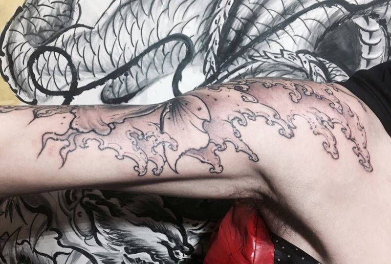 当前位置: 首页 >黑龙江省佳木斯市纹身店-九霄刺青TATTOO纹身图案>新传统手绘原创锦鲤纹身图片_原创动物国画传统手臂成品纹身图案