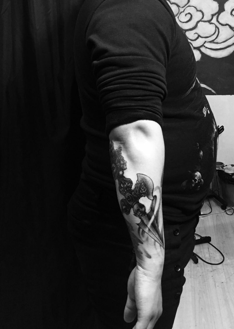 当前位置: 首页 >黑龙江省佳木斯市纹身店-九霄刺青TATTOO纹身图案>降魔杵纹身图片_成品手臂传统习俗字符宗教鬼神静物纹身图案