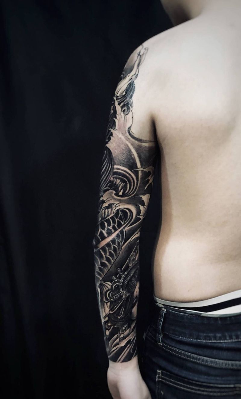 当前位置: 首页 >黑龙江省佳木斯市纹身店-九霄刺青TATTOO纹身图案>传统花臂完工✍