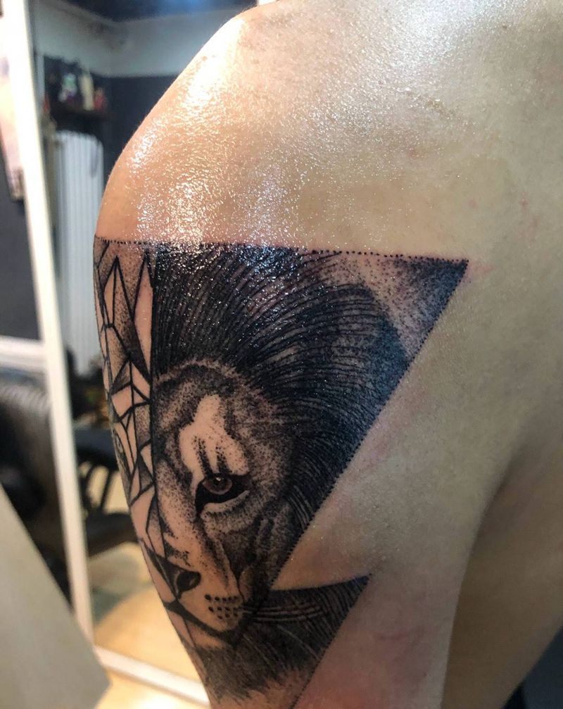 无ps 几何点刺狮子纹身图片_动物几何图腾清新传统写实肩部手臂成品纹身图案