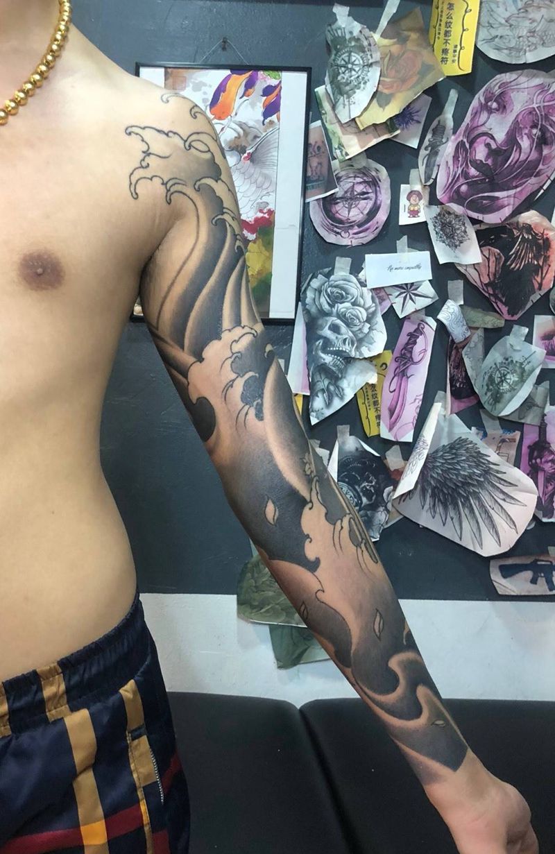 当前位置: 首页 >黑龙江省佳木斯市纹身店-九霄刺青TATTOO纹身图案>无ps恢复后水浪花臂纹身图片_原创传统手臂成品纹身图案