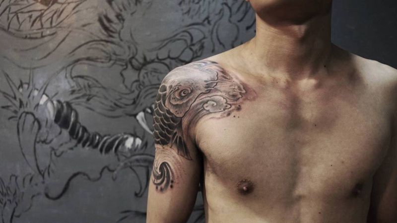 鱼(遮盖)纹身图片_原创动物传统手臂成品纹身图案