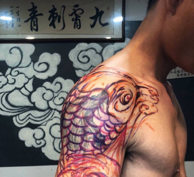 当前位置: 首页 >黑龙江省佳木斯市纹身店-九霄刺青TATTOO纹身图案>鱼(遮盖)纹身图片_原创动物传统手臂成品纹身图案