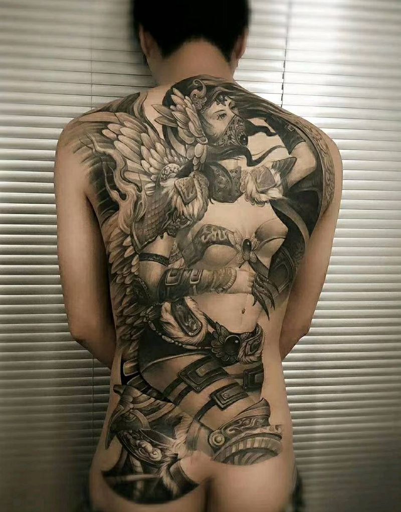 黑灰满背纹身图案