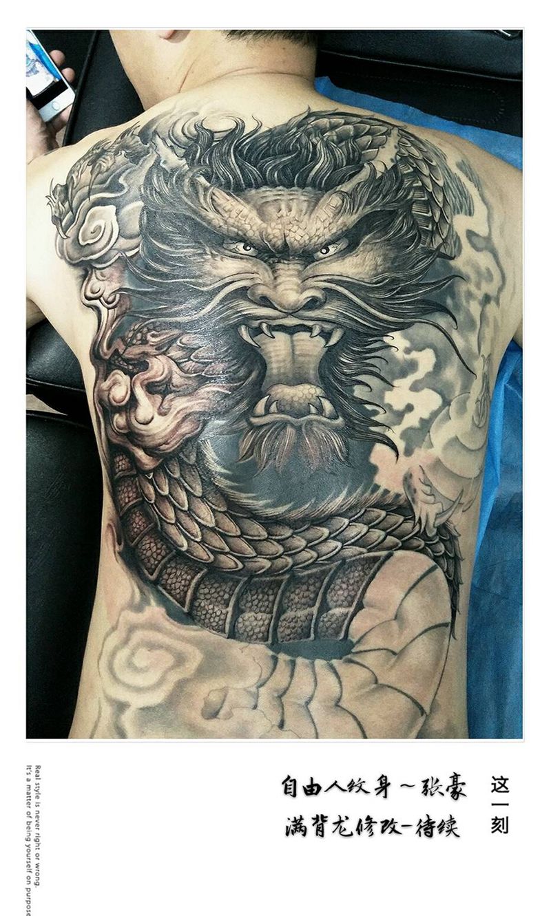 黑灰满背纹身图案