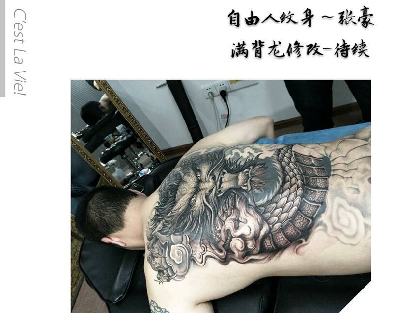 黑灰满背纹身图案