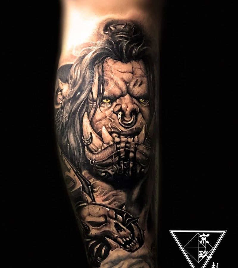 当前位置: 首页 >黑龙江省牡丹江市纹身店-京玖刺青工作室纹身图案>魔兽情怀纹身图片_成品腿部欧美写实肖像人物鬼神纹身图案