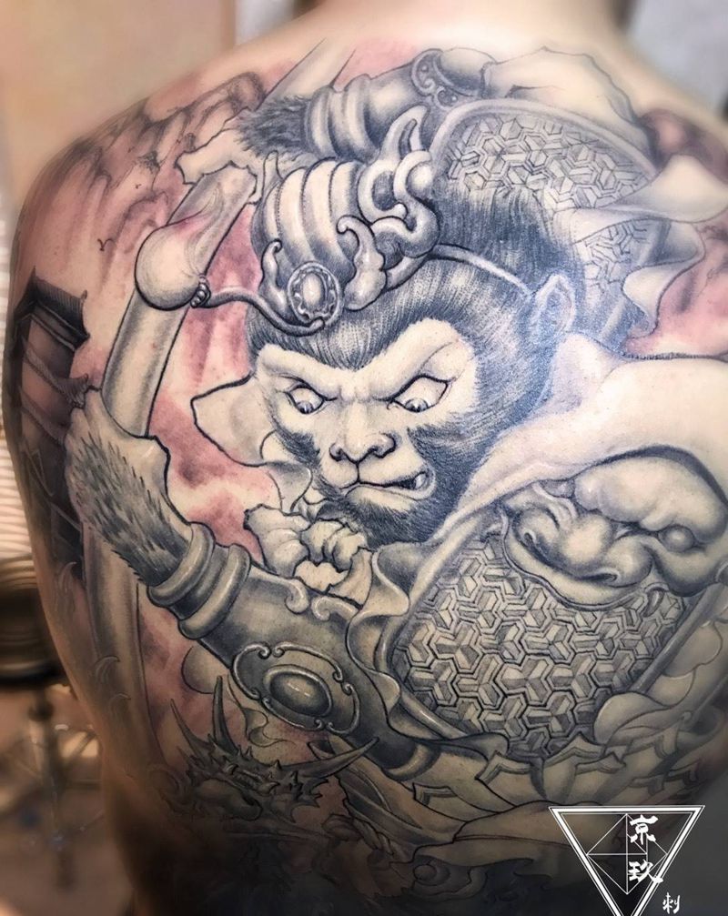 当前位置: 首页 >黑龙江省牡丹江市纹身店-京玖刺青工作室纹身图案>大圣纹身图片_成品背部传统鬼神纹身图案