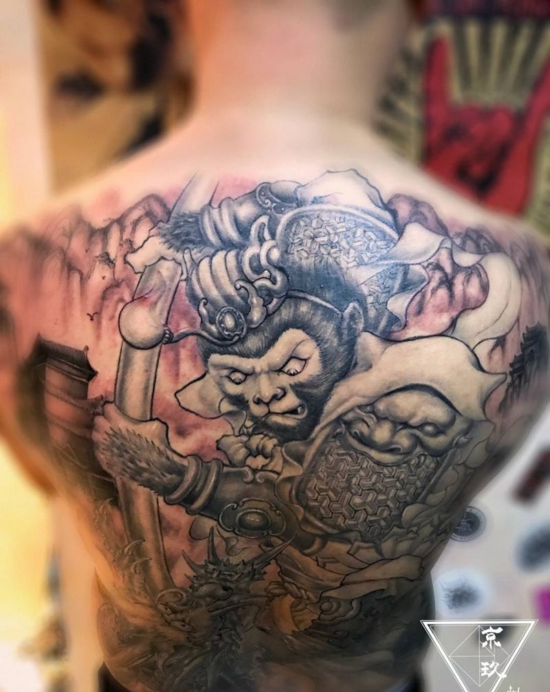当前位置: 首页 >黑龙江省牡丹江市纹身店-京玖刺青工作室纹身图案>大圣纹身图片_成品背部传统鬼神纹身图案