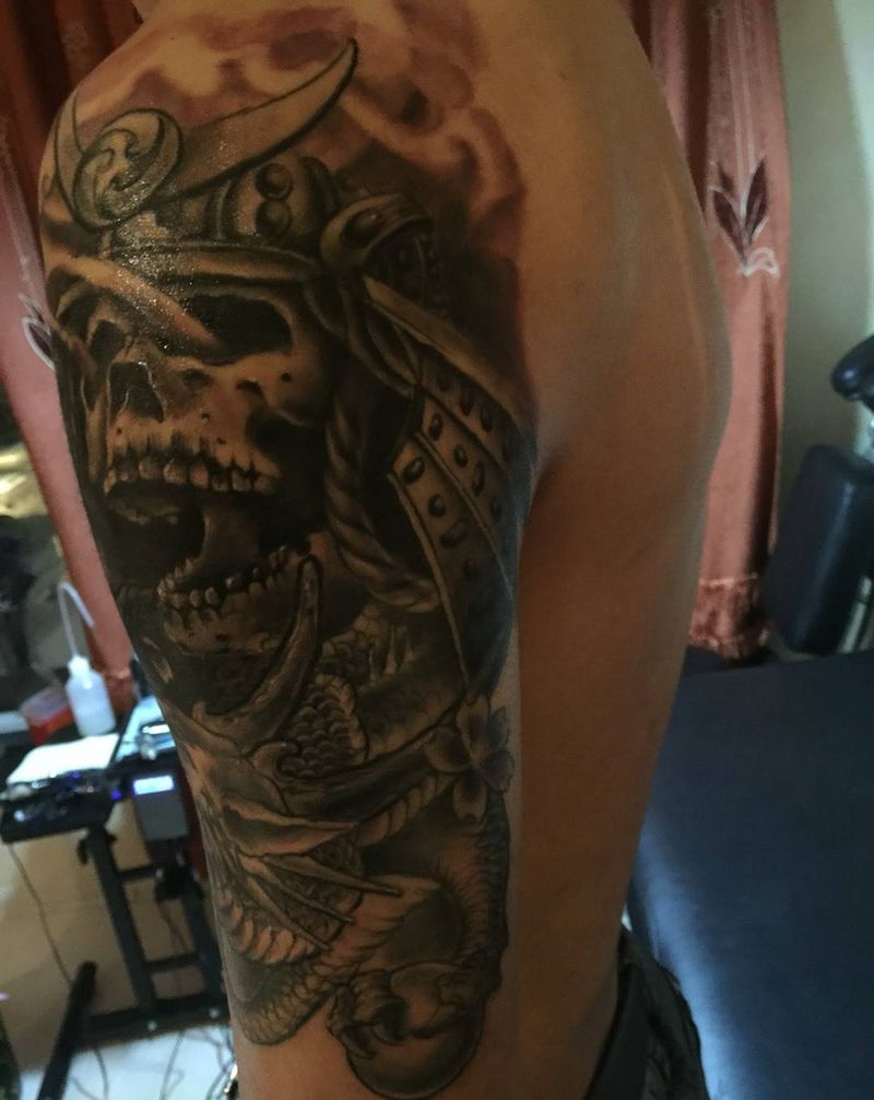 当前位置: 首页 >黑龙江省牡丹江市纹身店-京玖刺青工作室纹身图案>鬼武士纹身图片