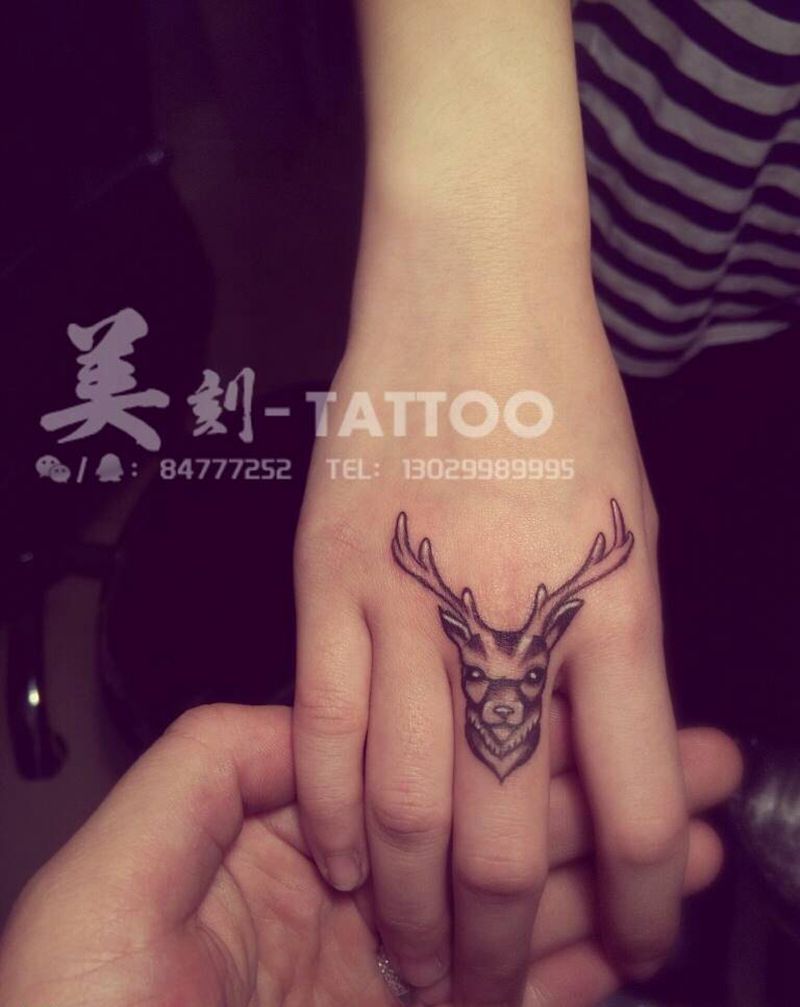 当前位置: 首页 >黑龙江省佳木斯市纹身店-美刻刺青纹身图案>袖珍驯鹿纹身图片_手部欧美贴纸几何成品纹身图案