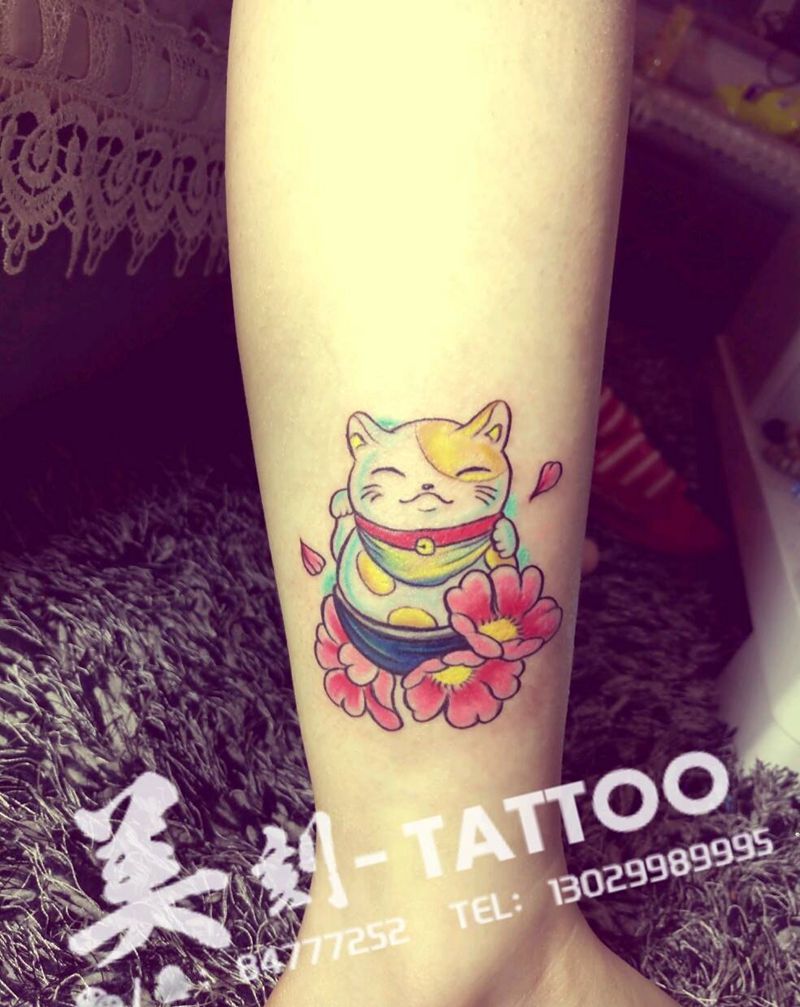 招财猫!纹身图片_手臂腿部欧美传统清新贴纸人物鬼神成品纹身图案
