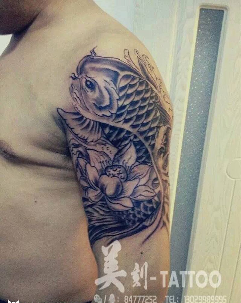 大臂锦鲤纹身图片_肩部传统成品纹身图案
