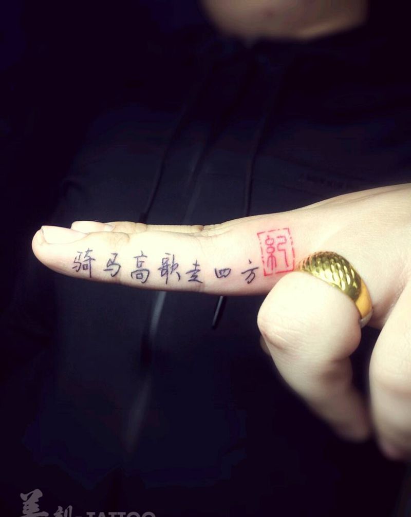 骑马高歌走四方纹身图片_手部传统字符成品纹身图案
