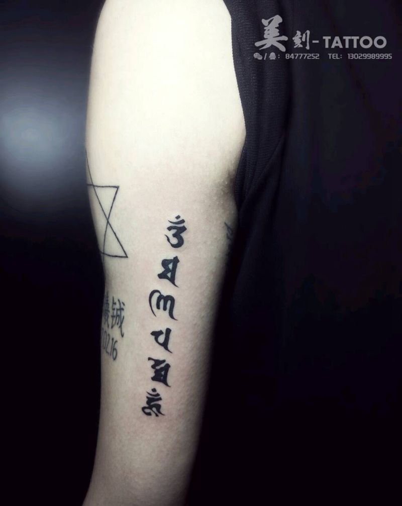 六字真言、纹身图片_手臂传统字符宗教成品纹身图案