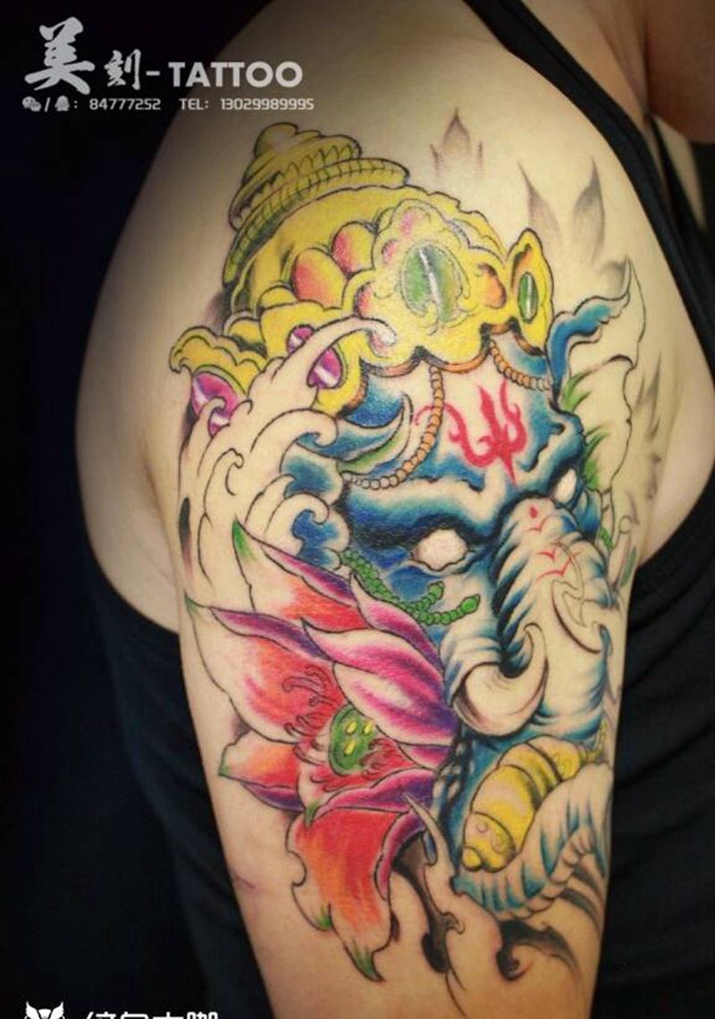 当前位置: 首页 >黑龙江省佳木斯市纹身店-美刻刺青纹身图案>象神纹身图片_手臂欧美传统动物鬼神成品纹身图案