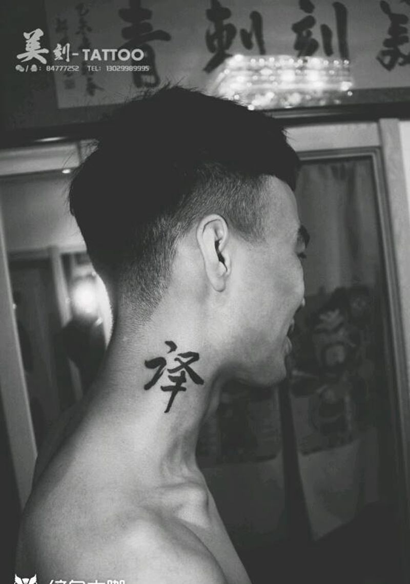 译纹身图片_颈部清新字符原创成品纹身图案