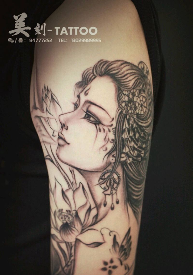 当前位置: 首页 >黑龙江省佳木斯市纹身店-美刻刺青纹身图案>《艺伎》纹身图片_手臂传统人物成品纹身图案