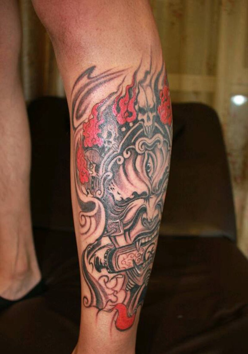 • T包小腿吹火男+阿多福纹身图片_腿部老传统新传统吹火男阿