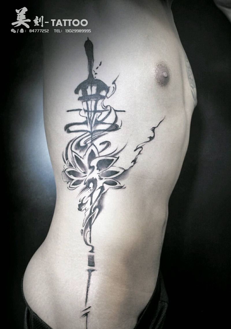 当前位置: 首页 >黑龙江省佳木斯市纹身店-美刻刺青纹身图案>《水墨莲花》纹身图片_腰部传统植物图腾成品纹身图案