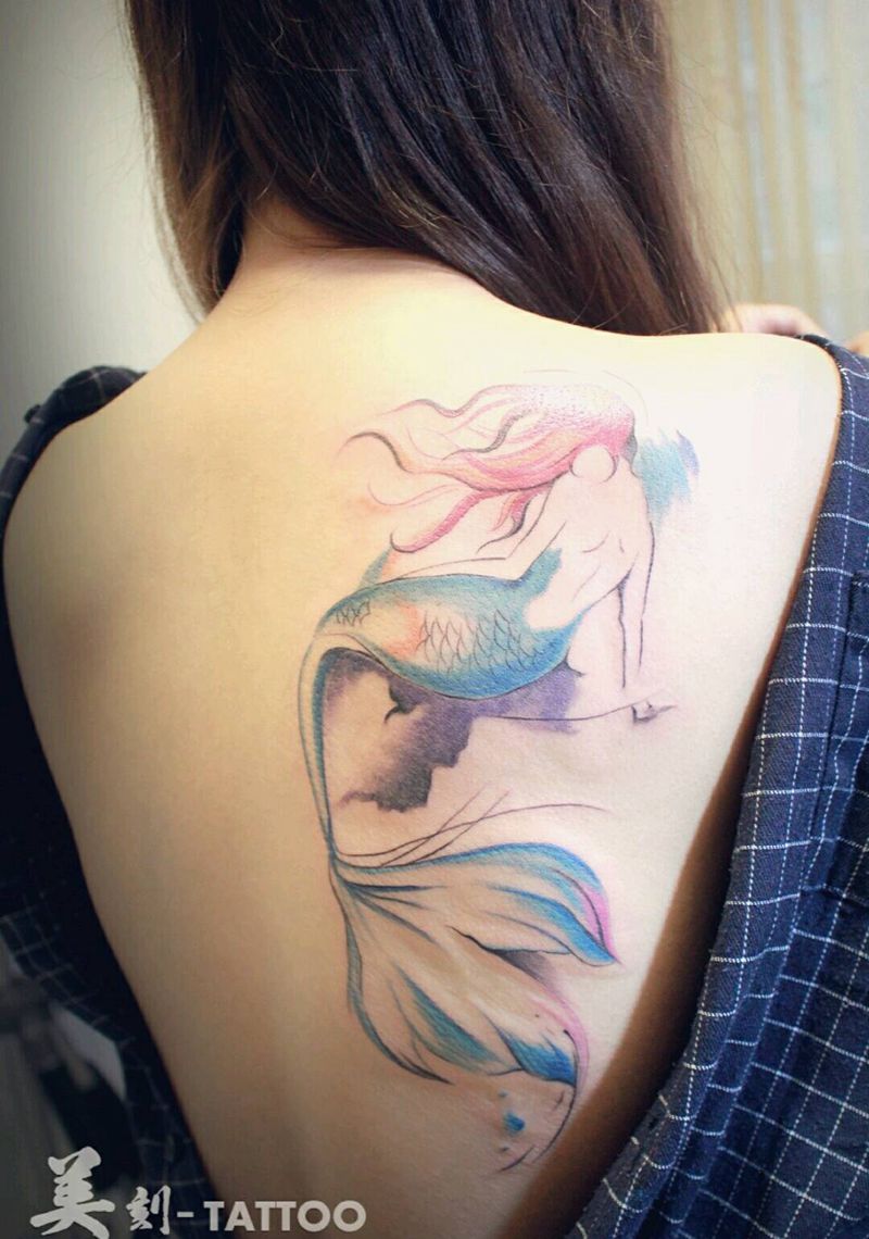 人鱼纹身图片_肩部背部欧美清新贴纸动物原创成品插画纹身图案