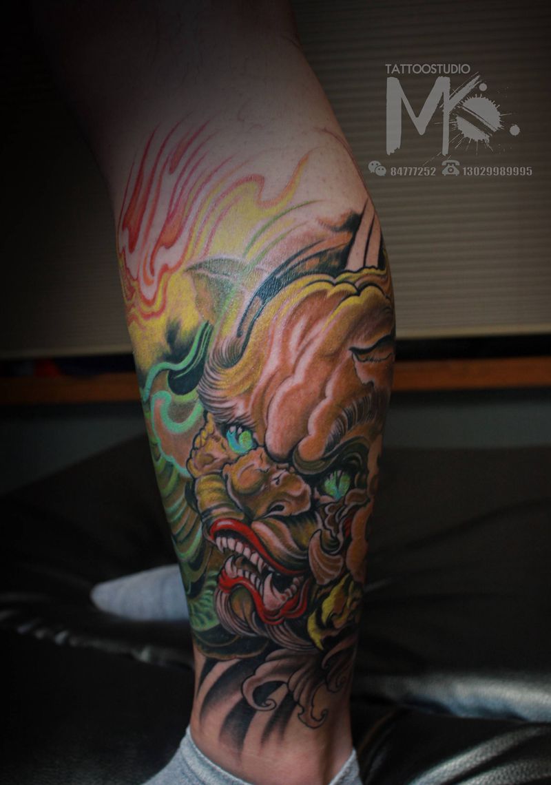 当前位置: 首页 >黑龙江省佳木斯市纹身店-美刻刺青纹身图案>小腿福狮纹身图片_腿部新传统纹身图案
